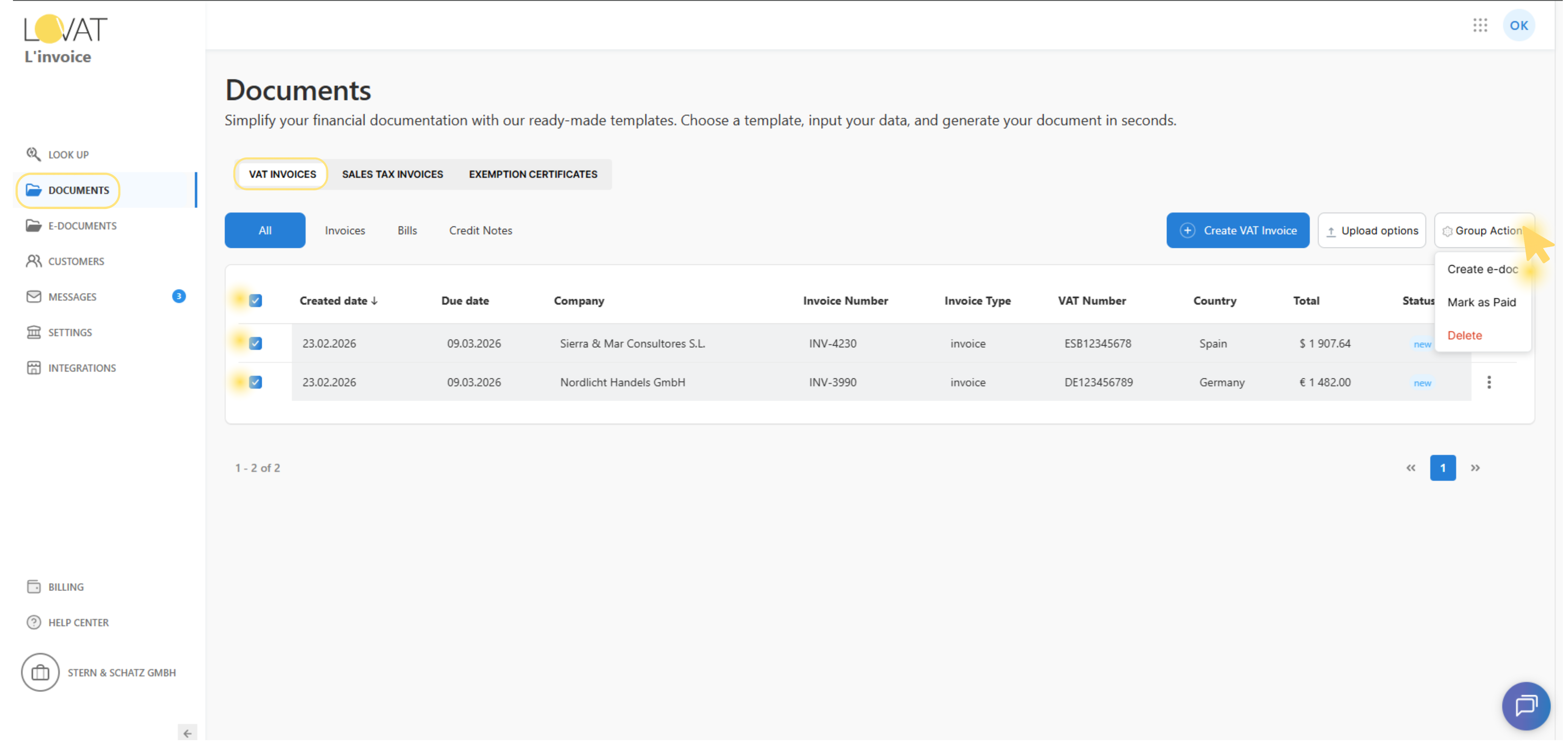 This guide explains when e-document creation is available in the platform and what needs to be prepared in advance. It also describes how the process differs for Peppol and Croatia (Fiskalizacija 2.0), how to create e-documents individually or in bulk, and where to send the created e-documents.