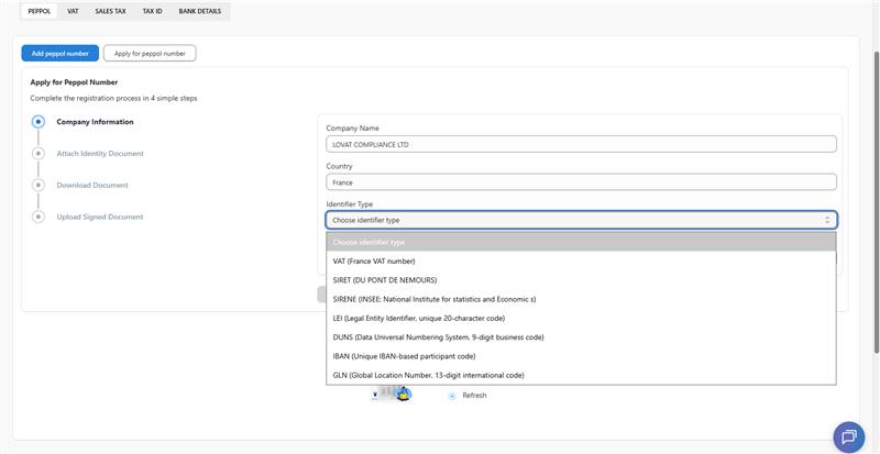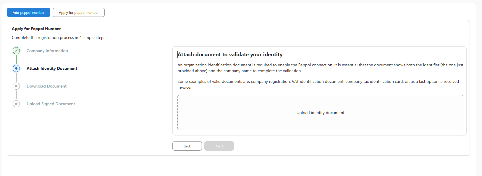 There are two ways to add a Peppol ID in the system, depending on whether the client already has an existing Peppol ID or needs to register a new one.