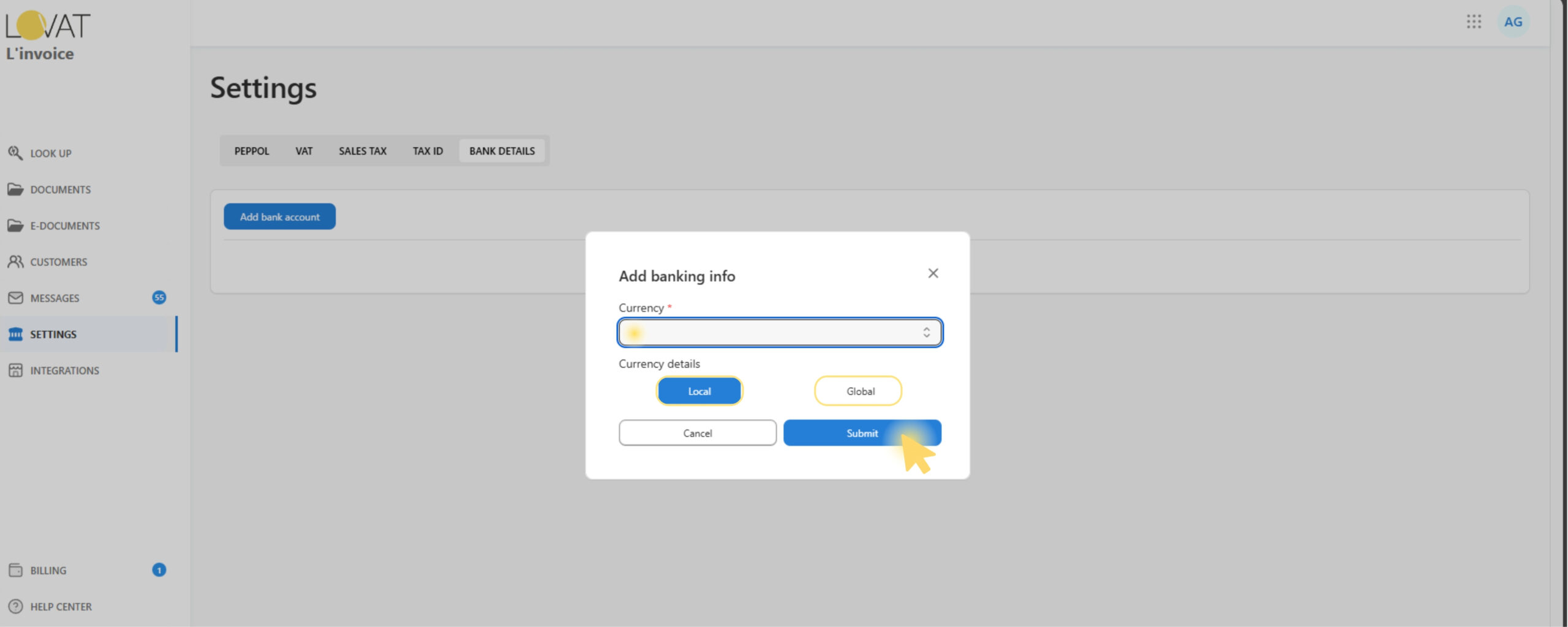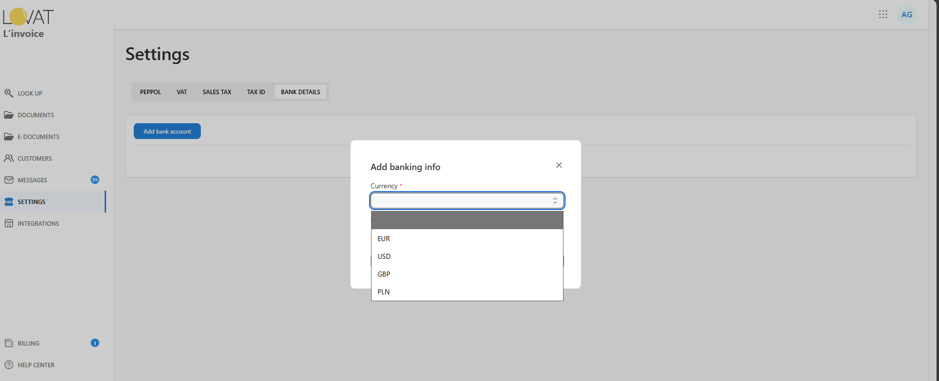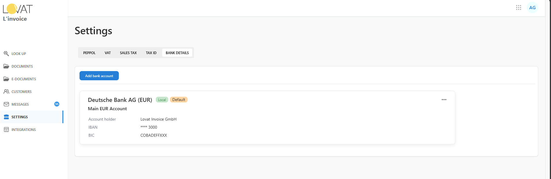Bank details are used when generating PEPPOL documents (they are included in the invoice payment/bank information section).